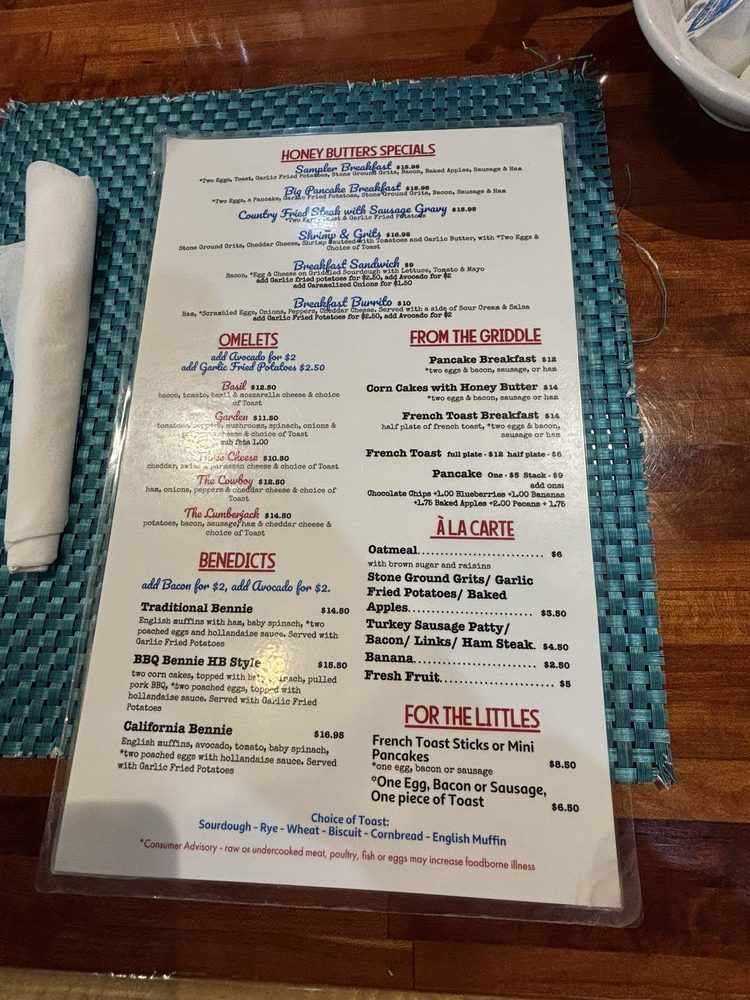 Guests rave about the crispy French toast and the savory catfish paired with exceptional hush puppies, making every visit a delight. The casual vibe accommodates families and groups, while outdoor seating and dog-friendly policies enhance the experience. Whether you're seeking a quick takeout or a leisurely meal with friends, Honey Butter's Kitchen promises a satisfying visit. With welcoming staff and a clean ambiance—free from the odors of carpet—this gem offers a refreshing dining experience that keeps patrons coming back for more.